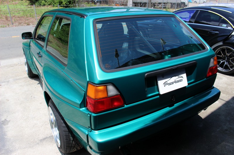 フォルクスワーゲン ゴルフU カスタムのご紹介です。 ●ワイドボディキット:PANDEM ●全塗装 モンタナグリーンメタリック ●ボンネットピン 加工取付 ●スムージング ●錆など板金処理 ●ホイール:WORK MEISTER CR01 15inch ノーマルではおとなしい印象のGolf 2に、リベット留めオーバーフェンダーをプラス。 ボディ同色バンパーで全体をスッキリまとめています。 GolfUだからこそ放てるオーラがありますね♪ この度はありがとうございます!